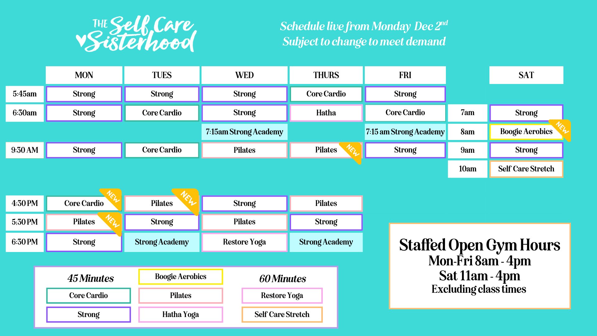 Your body might need options to regress or progress - just let a teacher know if you have an new injury, ongoing condition or sensory need before class starts or wave us over during class & we can change it for you.
